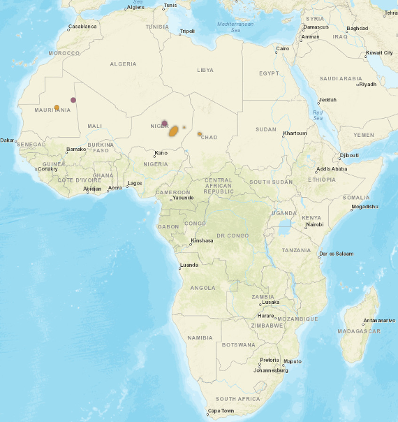 Distribuição Geográfica: No passado, era encontrado da Mauritânia até o Egito e o Sudão, no norte da África. Atualmente, sua distribuição está restrita ao Níger e a Líbia.