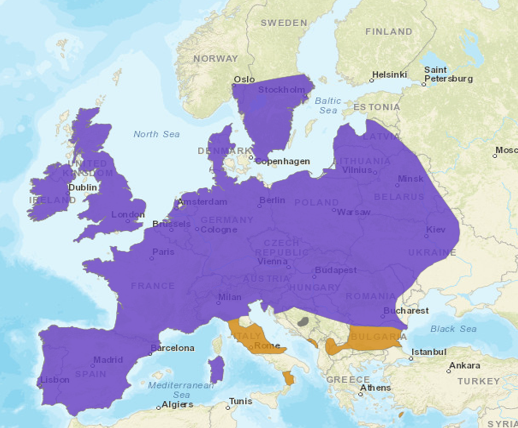 Distribuição Geográfica: Ocorre naturalmente na Europa, Mesopotâmia e norte da África. No entanto, foi introduzido nas Américas, África do Sul, Austrália, Nova Zelândia, Fiji e ilhas Leeward.