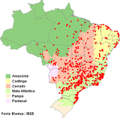 Distribuição Geográfica: Ocorrem no Brasil, principalmente nas regiões Sul da Amazônia, Centro-Oeste e Nordeste. Mundialmente há registros da espécie também no Paraguai.