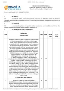 Aquisição de rações para o balanceamento nutricional das dietas dos animais do plantel da FJZB