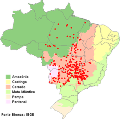Distribuição Geográfica: Ocorrem no Brasil, principalmente da região central ao oeste de São Paulo, Paraná e Minas Gerais. Mundialmente há registros em países como Paraguai, Argentina e Bolívia.