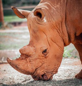 Curiosidades: Ao contrário do que muitas pessoas pensam, o nome popular desse rinoceronte não tem relação com a sua cor, mas com um mal-entendido histórico. Os primeiros exploradores europeus ao encontrar esta espécie no sul da África foram holandeses que a batizaram de rinoceronte “wijd”, uma palavra em holandês que significa “largo” e uma referência aos lábios do animal. Quando colonos britânicos chegaram depois, entenderam o nome do animal em holandês errado e confundiram com “white”, a palavra em inglês para “branco”. Todas as 5 espécies de rinoceronte que habitam a África e a Ásia sofrem grande ameaça da caça ilegal por seus chifres, que são visados para abastecer o mercado da medicina tradicional chinesa. No entanto, o chifre é feito de queratina (mesmo material das unhas e cabelos humanos) e não há qualquer comprovação científica de que tenha poder curativo.