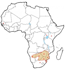 Distribuição Geográfica: Habita savanas arbustivas e secas do sul da África.