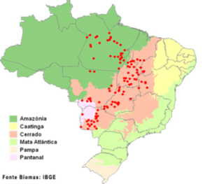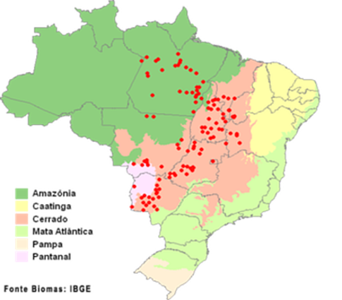 Distribuição Geográfica: Ocorrem principalmente na região Centro-Oeste e Nordeste do Brasil. Mundialmente há registros em países como Bolívia e Paraguai.