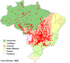 Distribuição Geográfica: Desde a Amazônia até o Paraná, sendo que, historicamente chegava até Santa Catarina. Encontrada também no leste do Panamá e norte da Colômbia, Venezuela, Guianas, Peru, Bolívia, até o norte da Argentina, Paraguai e no oeste do Equador.