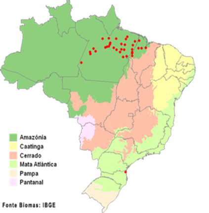 Distribuição Geográfica: Ocorrem exclusivamente no Brasil, principalmente encontrado no leste amazônico, mas também há registros de sua ocorrência em estados como Rondônia e Mato Grosso.
