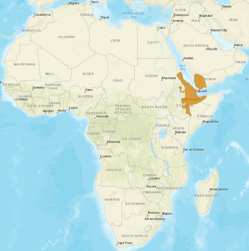 Distribuição Geográfica: Ocorre no nordeste da África e sudoeste da península Arábica.