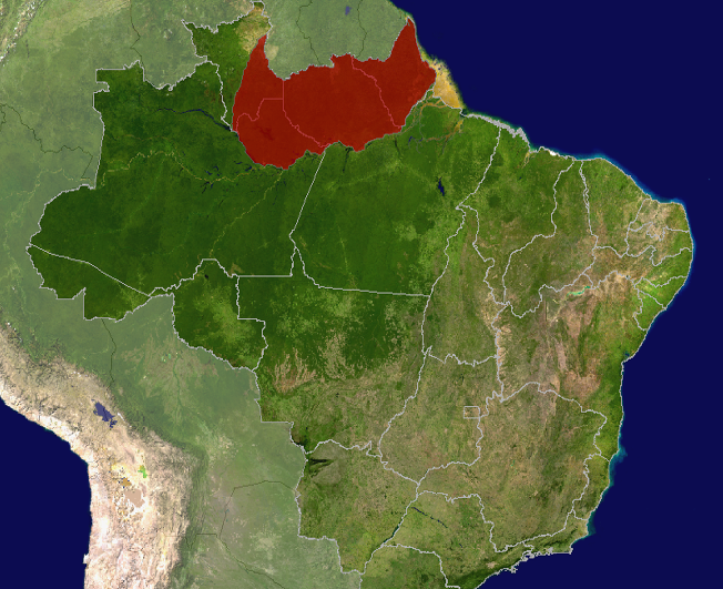 Distribuição Geográfica: Ocorre no Brasil ao norte do rio Amazonas, desde a região situada a leste dos rios Negro e Branco, nos estados do Amazonas, Roraima e Amapá. E encontrado também na Guiana, Guiana Francesa e Suriname.