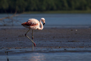 Características: Ave que atrai muitos olhares, de patas longas e de linda cor. Os flamingos medem cerca de 1 metro de comprimento e seu peso pode chegar até 2,3 Kg. O jovem da espécie possui uma cor acinzentada, bem diferente do indivíduo adulto que possui um rosa exuberante, que nas pontas das asas e nas juntas das patas possuem um rosa mais escuro.
