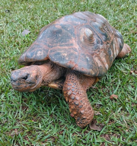 Curiosidades: Em inglês, é chamado de Yellow-Footed Tortoise (Tartaruga de Pés Amarelos), pois possui escamas amarelas, ou amarelo-alaranjados, nas patas e na cabeça. O Jabuti-tinga é a maior espécie de jabuti da América do Sul. Desempenha papel importante na dispersão de sementes na região Amazônica, consumindo uma grande diversidade de espécies vegetais.