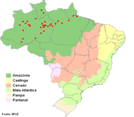 Distribuição Geográfica: Ocorrem no Brasil, principalmente nas regiões alta e média da Amazônia até o Amapá. Mundialmente há registros em países como Colômbia, Guiana e Peru.