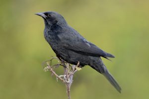Características: Medem entre 21.5 e 25.5 cm e pesam entre 70 e 90 g, aproximadamente. É inteiramente negro. Imaturos possuem pele nua a redor dos olhos. O bico, também negro, possui sulcos profundos na base.