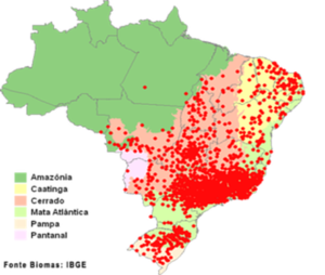 Distribuição Geográfica: Ocorrem no Brasil principalmente nas regiões Nordeste, Sudeste, Centro-Oeste e Sul. Mundialmente há registros em
