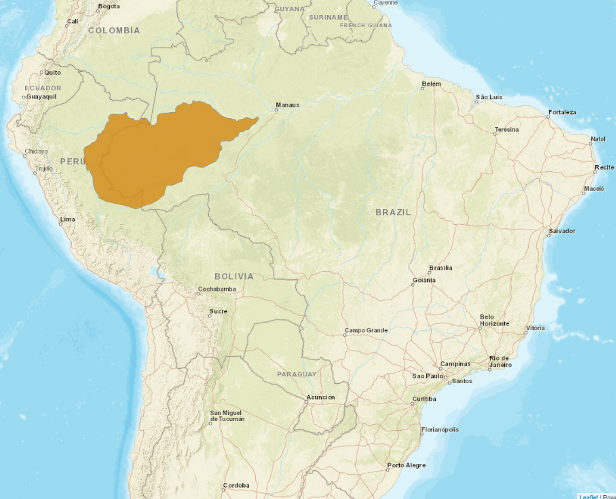 Distribuição Geográfica: Ocorre no Brasil entre os rios Javari, Solimões e Purus, nos estados do Amazonas e Acre. É encontrado também no Peru e Colômbia.